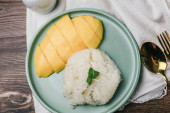 Zdjęcie "Mango i ryż na czarnej tablicy łupkowej" może być wykorzystywane do celów osobistych i komercyjnych zgodnie z warunkami zakupionej licencji Royalty-free. Obraz jest dostępny do pobrania w jakości wysokiej rozdzielczości do 5760x3840.