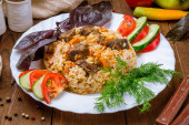 pilaf z widokiem z bliska wołowiny