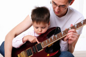 mały chłopiec lubi muzykę