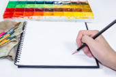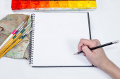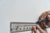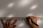 linijka trzymająca dłoń i ołówek sprzęgła z tłem płótna