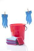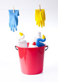 czyszczenie elementów i detergentów na białym tle