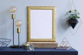 Blank Photo Frame Mockup na biurku. Rendering 3D, ilustracja 3D.