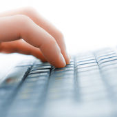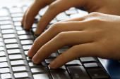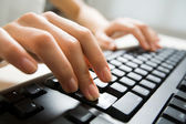 Obraz ludzkich rąk piszących na maszynie. Skupienie selektywne