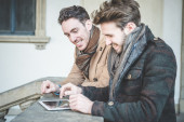 Zdjęcie "dwa mężczyzna pracujący na tabletki" może być wykorzystywane do celów osobistych i komercyjnych zgodnie z warunkami zakupionej licencji Royalty-free. Obraz jest dostępny do pobrania w jakości wysokiej rozdzielczości do 5760x3840.
