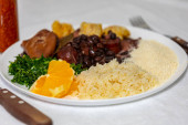 Zdjęcie "Obraz tradycyjnego brazylijskiego dania feijoada składający się z pięciu składników - feijoada, farofa, angielski sos, ryż i covey na białym talerzu" może być wykorzystywane do celów osobistych i komercyjnych zgodnie z warunkami zakupionej licencji Royalty-free. Obraz jest dostępny do pobrania w jakości wysokiej rozdzielczości do 5760x3840.