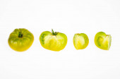Zielone i dojrzałe pomidory w paski koloru skóry. Studio zdjęcie