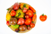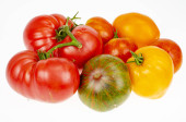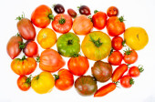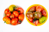 Zielone i dojrzałe pomidory w paski koloru skóry. Studio zdjęcie