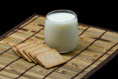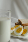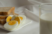 Mleko i plasterki pełnoziarnistego chleba na śniadanie.