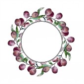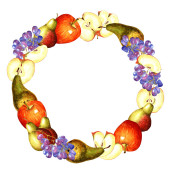 Akwarela okrągła ramka z ziołami, owocami i warzywami. Ręcznie rysowana ilustracja kwiatowa z miejscem na tekst. Zaprojektuj zaproszenia, kartki okolicznościowe, plakaty i dekoracje.