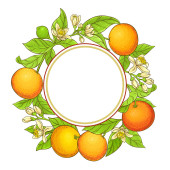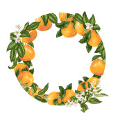 Akwarela okrągła ramka z kumkwatem i liśćmi. Ręcznie rysowana ilustracja kwiatowa z miejscem na tekst. Zaprojektuj zaproszenia, kartki okolicznościowe, plakaty i dekoracje.