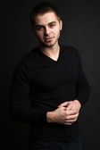 Zdjęcie "przystojny młody mężczyzna na ciemnym tle" może być wykorzystywane do celów osobistych i komercyjnych zgodnie z warunkami zakupionej licencji Royalty-free. Obraz jest dostępny do pobrania w jakości wysokiej rozdzielczości do 5760x3840.