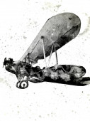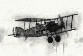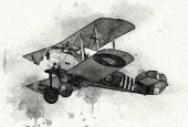 stary myśliwiec samolot odizolowany na białym tle sztuka vintage retro ilustracja