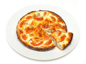 Hiszpańska Tortilla, Pincho de Tortilla. Hiszpański omlet domowej roboty z ziemniakami i jajkami. izolowany na białym tle