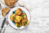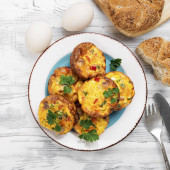 Hiszpańska Tortilla, Pincho de Tortilla. Hiszpański omlet domowej roboty z ziemniakami i jajkami.