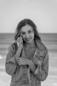 Sportowiec pije wodę podczas przerwy w sporcie. Czarno-białe zdjęcie. BW
