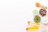Tło spa z miejscem na tekst. Karta okolicznościowa Spa wellnes. motyw aromaterapii, ręcznie robiony bio kosmetyk. Układy płaskie.