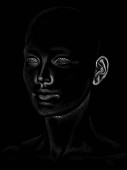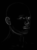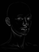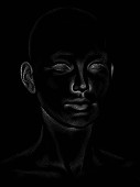 Seria Dot Rendering. 3D renderowanie głowy modelu człowieka wykonywane techniką naklejania obrazu.