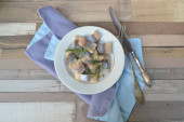Pieczony Woodcock lub crouse z sosem żurawinowym i makaronem, pionowy obraz