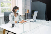 Pracownicy biurowi w maskach oddechowych w miejscu pracy