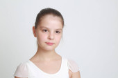 Portret dziewczynki z bliska. Odizolowany na białym tle.