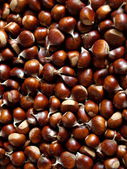 Świeże jadalne słodkie kasztany jako tło, zbliżenie