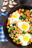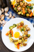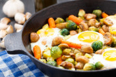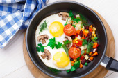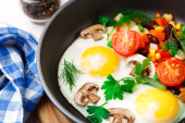 Zdjęcie "jajka pieczone z warzywami i grzybami" może być wykorzystywane do celów osobistych i komercyjnych zgodnie z warunkami zakupionej licencji Royalty-free. Obraz jest dostępny do pobrania w jakości wysokiej rozdzielczości do 5760x3840.