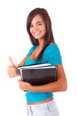 Zdjęcie "piękną studentkę pokazuje kciuk" może być wykorzystywane do celów osobistych i komercyjnych zgodnie z warunkami zakupionej licencji Royalty-free. Obraz jest dostępny do pobrania w jakości wysokiej rozdzielczości do 5760x3840.
