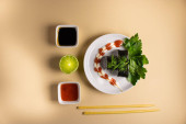 Zdjęcie "Zestaw bułek sushi serwowany jest na ciemnym tle. Pyszne tradycyjne japońskie jedzenie z bułkami sushi." może być wykorzystywane do celów osobistych i komercyjnych zgodnie z warunkami zakupionej licencji Royalty-free. Obraz jest dostępny do pobrania w jakości wysokiej rozdzielczości do 5760x3840.
