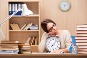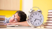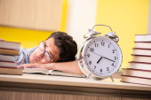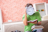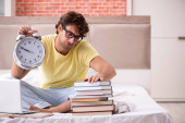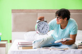 Młody student przygotowujący się do egzaminów w domu