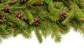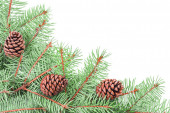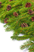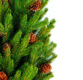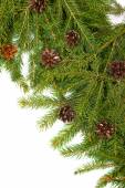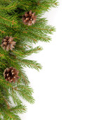 Świąteczna kartka z choinką odizolowaną na białym tle i przestrzenią do kopiowania świątecznych pozdrowień