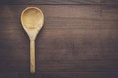 drewnianą łyżką na stole niebieski