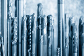 Scena zbliżeniowa używanych narzędzi frezarskich do frezarki CNC. Narzędzie skrawające do centrum obróbczego.