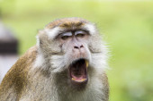 Małpa Macaque w lesie deszczowym w Bako, Borneo