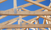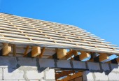 Konstruktor budynku instaluje podkład dachowy, wodoodporny, ochronę przed wilgocią na dachu murowanego domu przed pokryciem go gontami asfaltowymi. Budowa dachu.