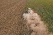Zdjęcie "Widok z lotu ptaka ciągnika rozpylającego chemikalia na duże zielone pole" może być wykorzystywane do celów osobistych i komercyjnych zgodnie z warunkami zakupionej licencji Royalty-free. Obraz jest dostępny do pobrania w jakości wysokiej rozdzielczości do 5760x3840.
