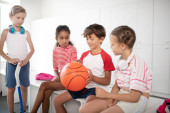 Zdjęcie "Trójka dzieci ćwiczy na siłowni i rozciąga nogi" może być wykorzystywane do celów osobistych i komercyjnych zgodnie z warunkami zakupionej licencji Royalty-free. Obraz jest dostępny do pobrania w jakości wysokiej rozdzielczości do 5760x3840.