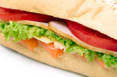 długa Bagietka kanapka z sałatą, plastry, świeże warzywa,