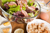 Zdjęcie "Sałatka Cezar z jajka na bekonie" może być wykorzystywane do celów osobistych i komercyjnych zgodnie z warunkami zakupionej licencji Royalty-free. Obraz jest dostępny do pobrania w jakości wysokiej rozdzielczości do 5760x3840.