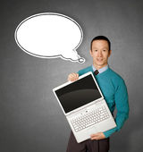 Zdjęcie "biznesmen z laptopa i myśli bańki pokazuje coś" może być wykorzystywane do celów osobistych i komercyjnych zgodnie z warunkami zakupionej licencji Royalty-free. Obraz jest dostępny do pobrania w jakości wysokiej rozdzielczości do 5760x3840.