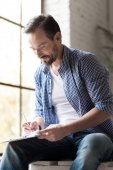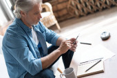 Zdjęcie "Mężczyzna w luźnych ubraniach pracuje z dokumentami finansowymi siedząc na kanapie w domu." może być wykorzystywane do celów osobistych i komercyjnych zgodnie z warunkami zakupionej licencji Royalty-free. Obraz jest dostępny do pobrania w jakości wysokiej rozdzielczości do 5760x3840.
