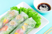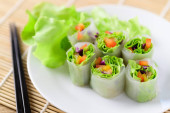 Kolorowe świeże warzywa sałatka sajgonki, Zdrowe wegańskie jedzenie