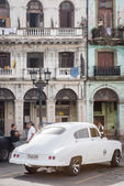 czerwony stary amerykański samochód na ulicy surowego w starej Hawanie