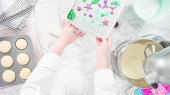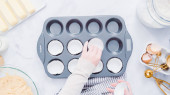 Leżeć płasko. Chłodzenie świeżo upieczonych babeczek waniliowych na suszarce.
