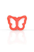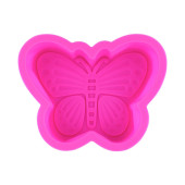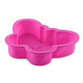 Różowy babeczka silikonowa lub forma muffinka izolowane na białym tle. Kubek na ciasto, pleśń silikonowa, naczynia do pieczenia. Widok z góry, płaski