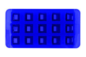 Niebieski silikon babeczka lub forma muffinka izolowane na białym tle. Kubek na ciasto, pleśń silikonowa, naczynia do pieczenia. Widok z góry, płaski