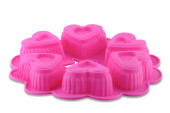 Fioletowa silikonowa babeczka lub forma muffinki wyizolowana na białym tle. Kubek na ciasto, pleśń silikonowa, naczynia do pieczenia. Widok z góry, płaski