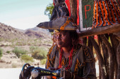 Lalibela, Etiopia - 13 lutego 2020: Etiopczycy w słynnym kościele św. Jerzego - Bete Giyorgis w Lalibeli, Etiopia.