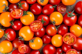 Zdjęcie "Selektywny nacisk na pyszne czerwone pomidory. Letni rynek taca rolnicze gospodarstwo pełne warzyw organicznych Może być stosowany jako tło." może być wykorzystywane do celów osobistych i komercyjnych zgodnie z warunkami zakupionej licencji Royalty-free. Obraz jest dostępny do pobrania w jakości wysokiej rozdzielczości do 5760x3840.