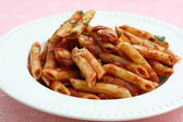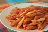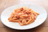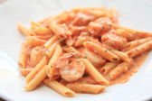 makaron penne z sosem pomidorowym wódki i krewetki