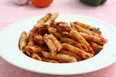 makaron penne z sosem pomidorowym wódki i krewetki